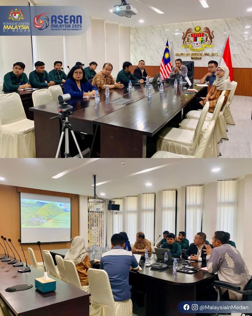 Senin, 17 November 2025Badan Pengelola Toba Caldera UNESCO Global Geopark (BPTCUGGp) melakukan audiensi dengan Konsulat Jenderal Malaysia di Medan pada Jumat, 07 November 2025, bertempat di Kantor Konjen Malaysia, Jalan Diponegoro, Medan. Pertemuan yang berlangsung pukul 09.00–10.45 WIB itu dipimpin oleh General Manager BPTCUGGp, Dr. Azizul Kholis, serta Konsulat Jenderal Malaysia Medan, Bapak Shahril Nizam bin Abdul Malek. Audiensi ini menjadi langkah strategis untuk memperkuat hubungan kerja sama lintas negara dalam pengelolaan dan pengembangan geopark berkelanjutan.